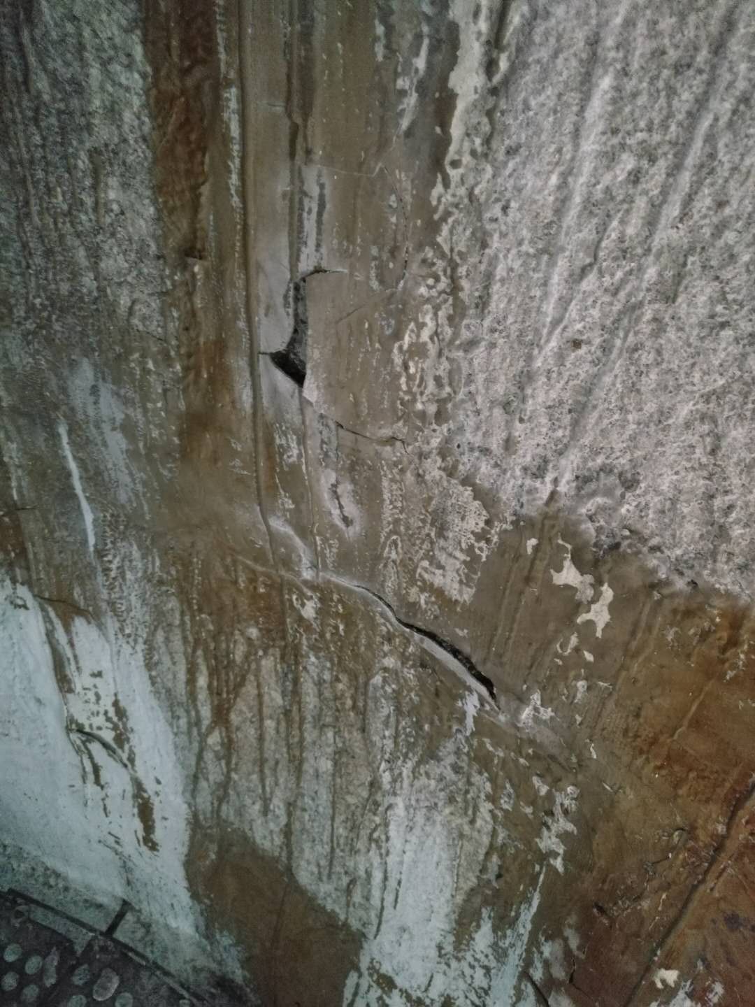 5、待塔壁結垢全部拆除清理干凈后,開始剔鑿內部縫隙,把松動的縫隙全部剔鑿干凈。