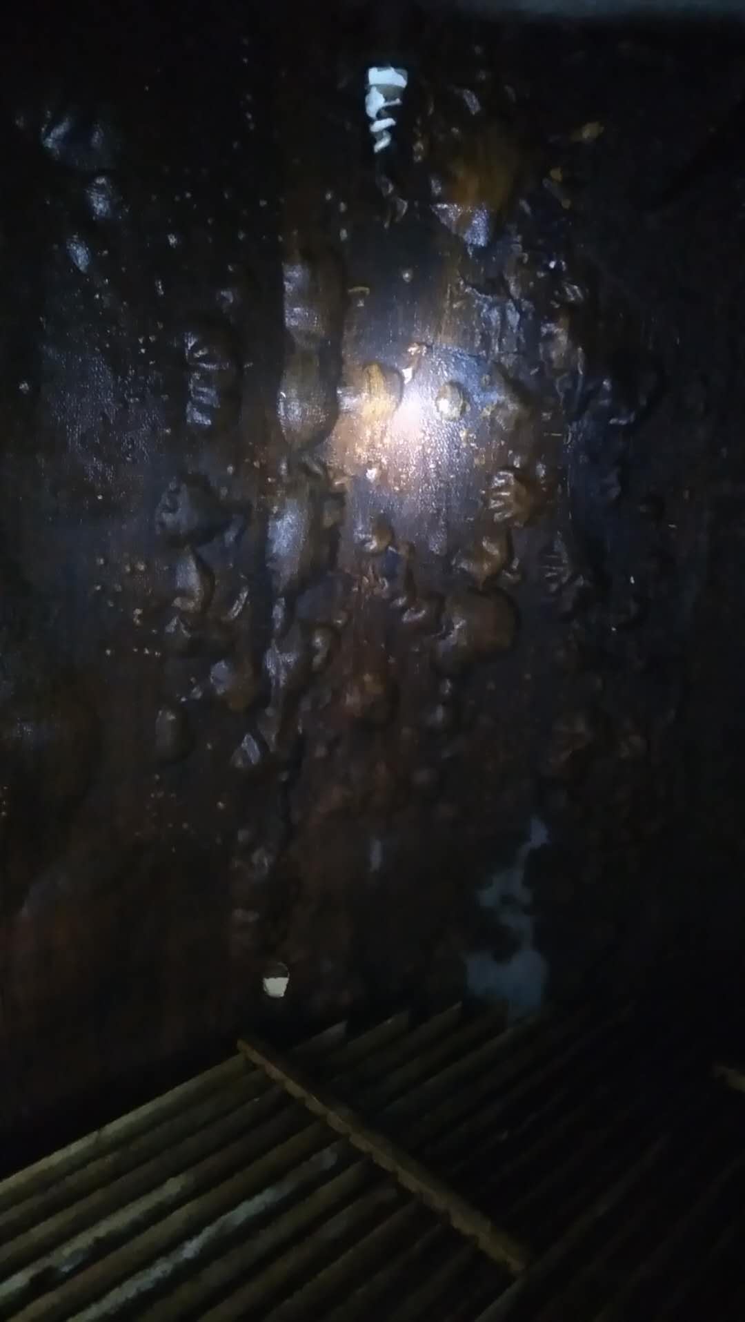 圖(1)脫硫塔內壁玻璃鱗片防腐材料脫落