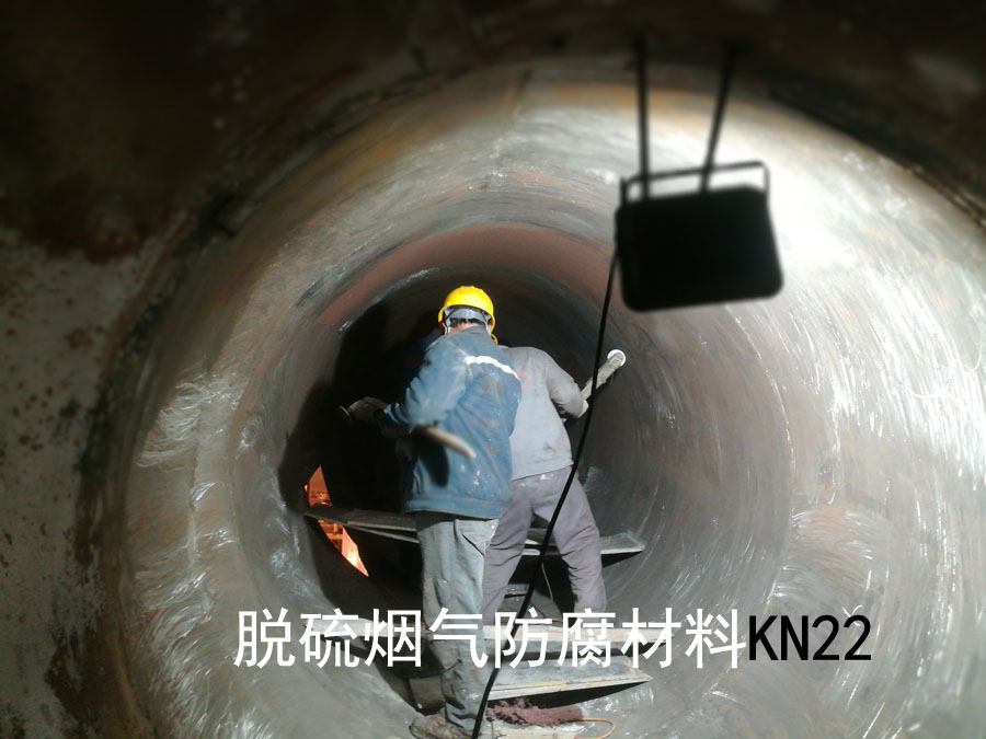 圖(2)北京耐默公司Kn22脫硫防腐材料現場施工,嚴格按照施工要求執行,刺激味小多了,工人施工也舒服