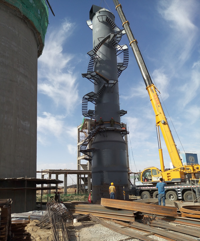 內蒙古脫硫塔吊裝工程現場